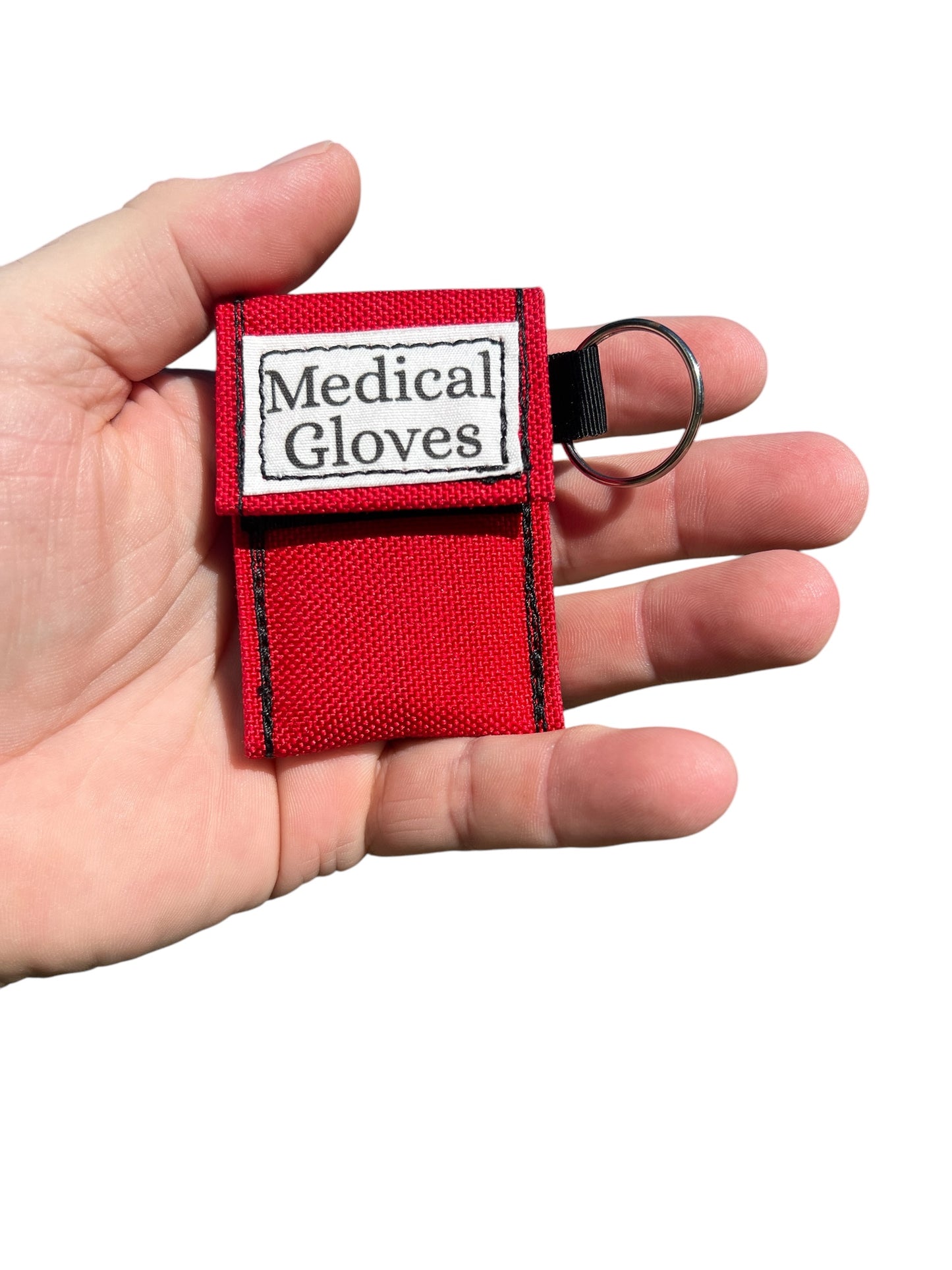 Introducing our versatile medical glove holder, designed for quick access and emergency convenience. Made from durable 1000D Cordura, this compact pouch measures 2" wide and 2.75" tall when closed, ensuring it securely holds one pair of medical gloves. The Velcro hook backing easily attaches to Velcro-lined pouches, allowing for a versatile but secure attachment. Featuring a handy loop for easy attachment to your keychain, carabiner, or gear, this glove holder ensures you're always prepared, and never caught without essential protection in an emergency. Never search for protective gloves again—with this efficient holder, you'll always have them within reach. Perfect for first responders, outdoor enthusiasts, and anyone who needs to stay ready for anything.